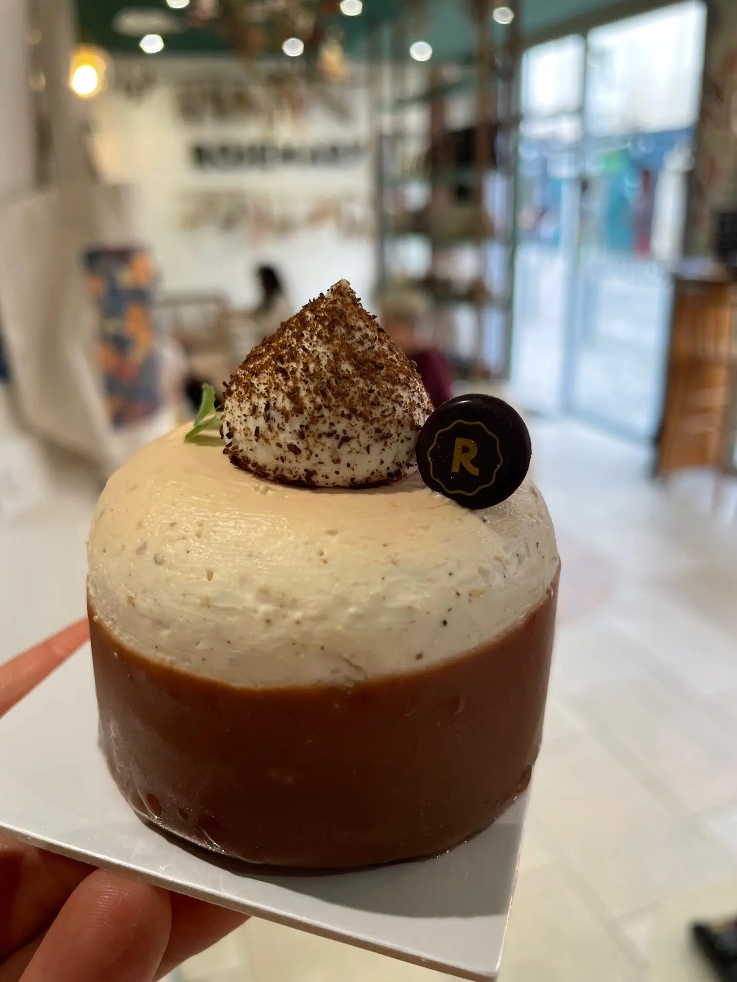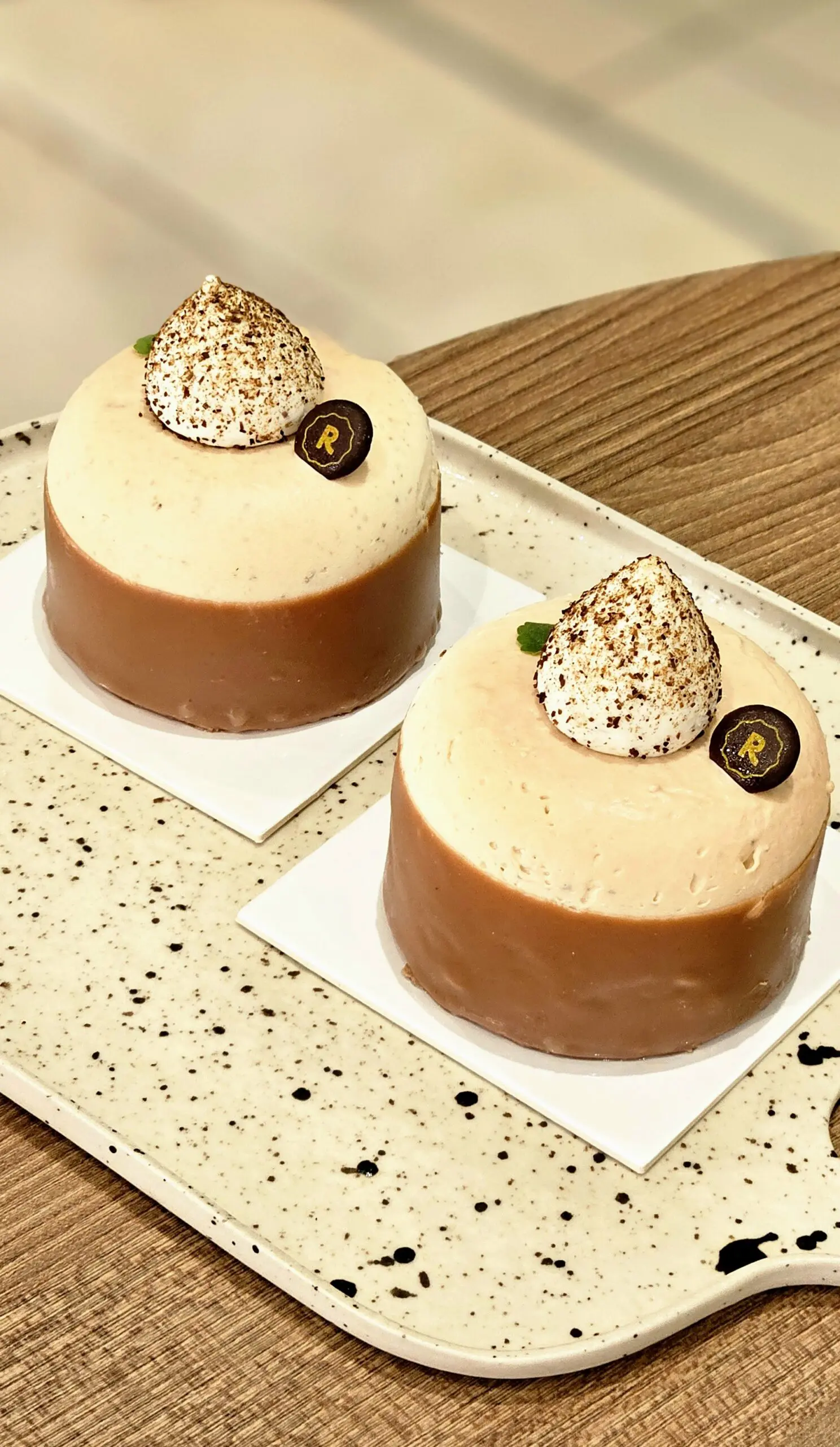 Un entremets réconfortant aux épices Chaï (cardamome, cannelle, gingembre, thé noir…), au confit de clémentine et au biscuit pain d’épices moelleux sur un sablé aux épices.