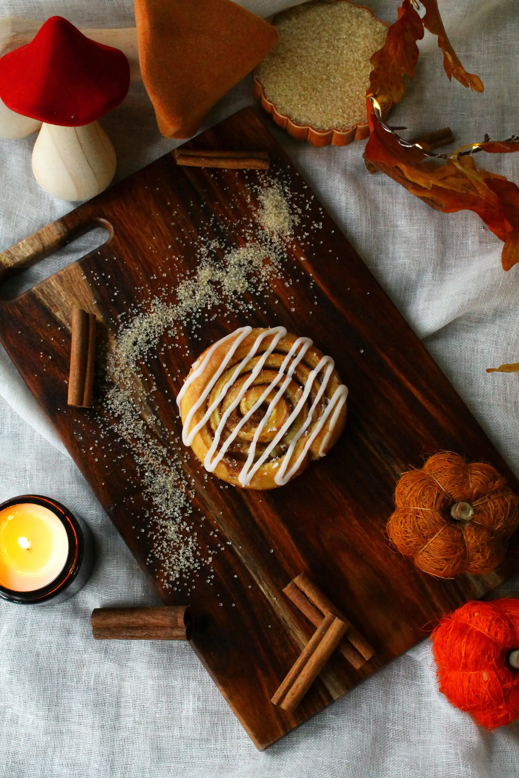 Une brioche ultra moelleuse roulée à la cannelle surmontée d’un glaçage sucré. C’est un must de la saison automne/hiver !