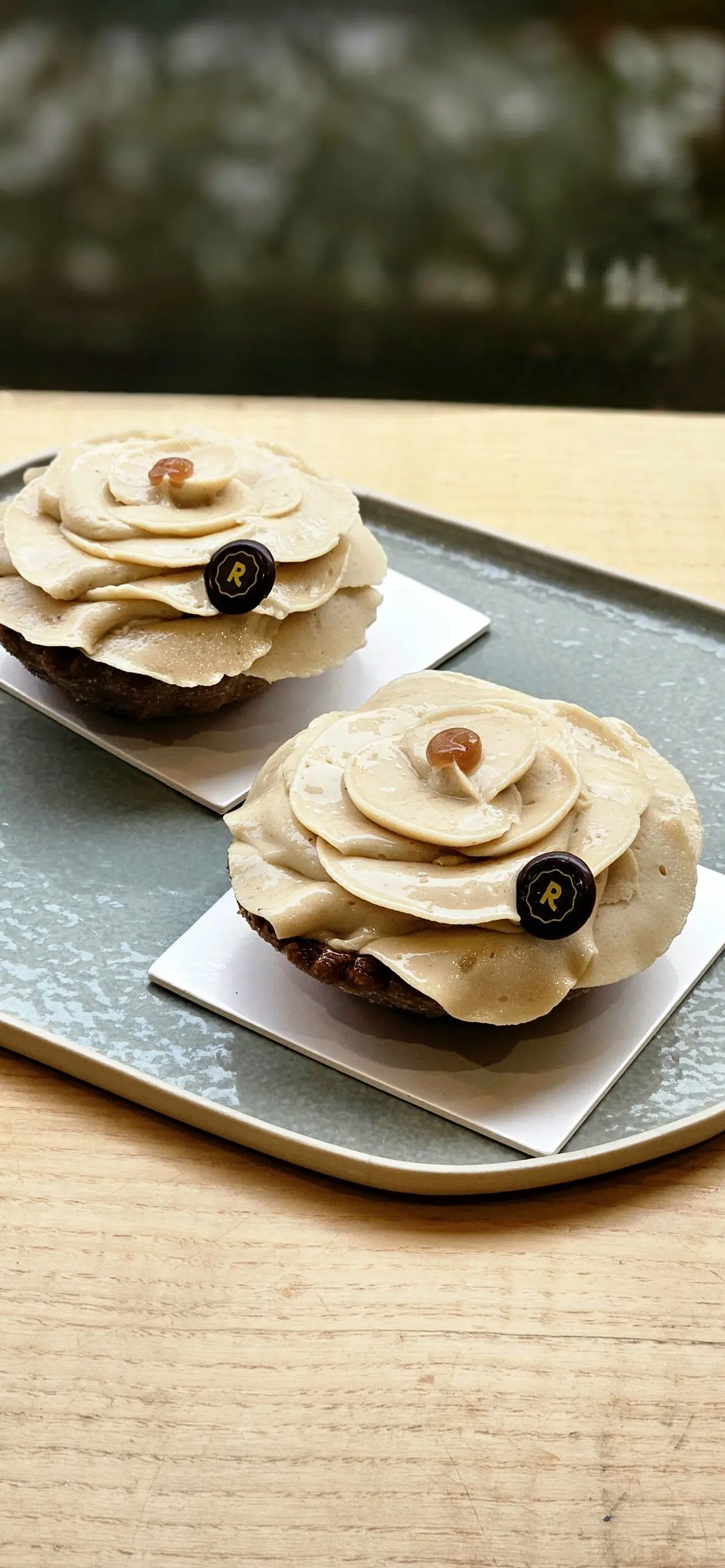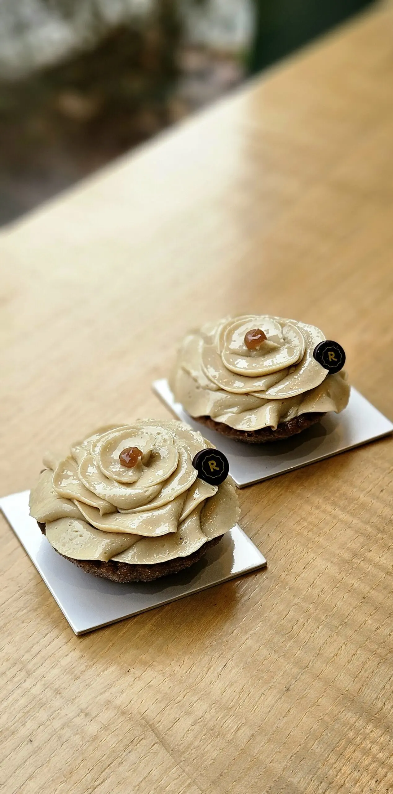 Pâte sucrée châtaigne, crème d’amandes, compotée de bergamote, ganache montée marrons.